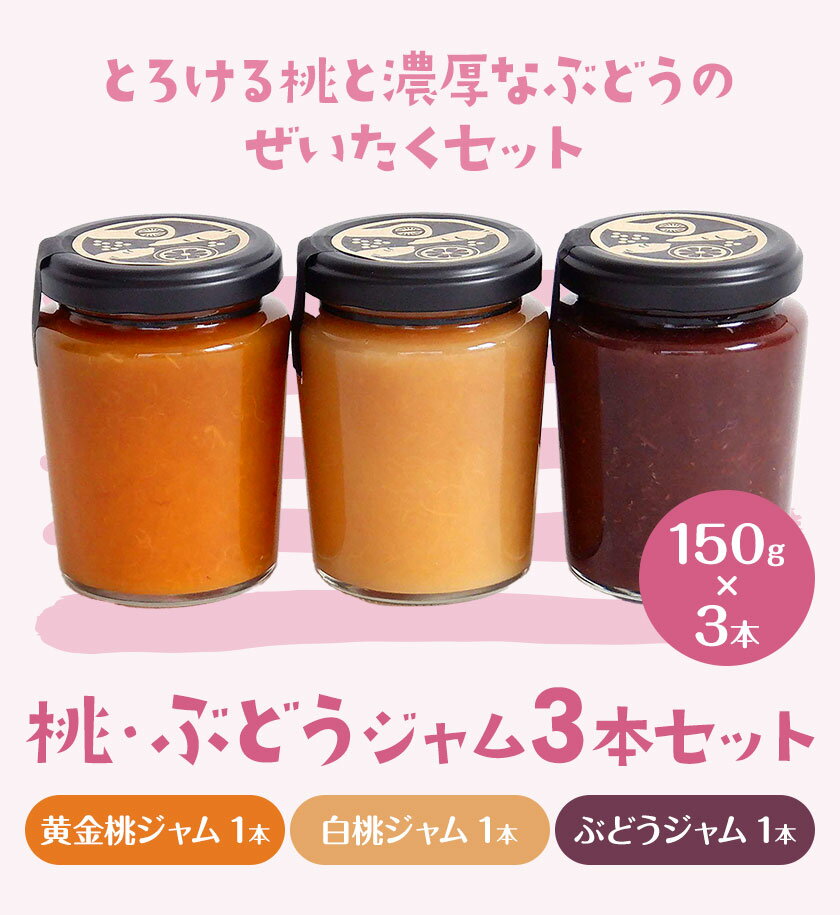 - 【ふるさと納税】桃 ぶどう ジャム セット 150g×3本 八百吉商店《30日以内に出荷予定(土日祝除く)》岡山県 備前市 送料無料 果物 ジャム 加工品 季節のジャム おまかせ