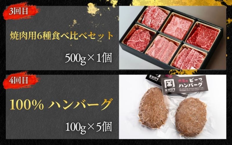 - 【ふるさと納税】 【全4回】美熊野牛 定期便A <すき焼きしゃぶしゃぶ用ロース&赤身モモ肉 400g・切り落とし 400g・焼肉用6種食べ比べ 500g・100%ハンバーグ 100g×5個> 牛肉 肉 ブランド牛 和牛 黒毛和牛 国産牛 すき焼き しゃぶしゃぶ 赤身肉 焼肉 ハンバーグ 惣菜