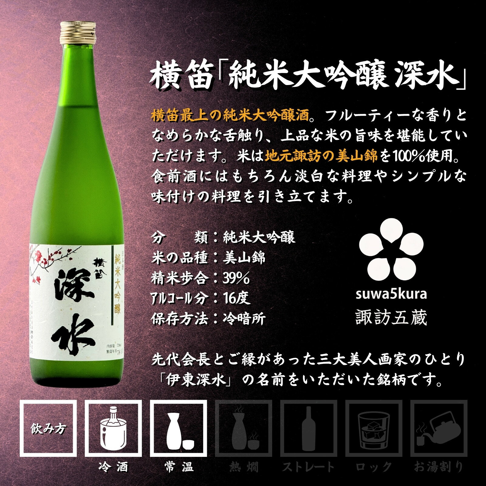- 【ふるさと納税】信州 諏訪五蔵 純米大吟醸 日本酒 飲み比べ セット 720ml 2本 真澄 「山花」 横笛 「深水 美山錦」 プレゼント 贈り物 ギフト 父の日 長野県 諏訪市 【102-37】