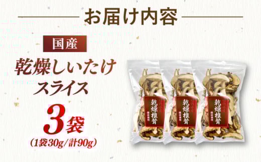 【年内発送】国産 乾燥椎茸 スライス 3袋セット ▼しいたけ シイタケ しいたけスライス シイタケスライス 干し椎茸 お取り寄せ 長期保存 高温 どんこ 桂川町/オドラ株式会社 [ADBA013]