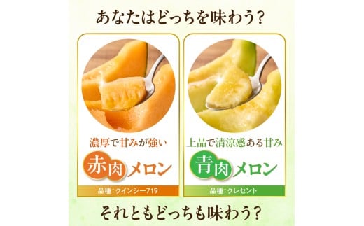 【先行予約】 令和8年産 赤肉青肉メロン 食べ比べ 2セット ( クインシー719 ・ クレセント ) 各2玉 計4玉 8kg以上 2026年7月中旬~8月中旬頃お届け予定