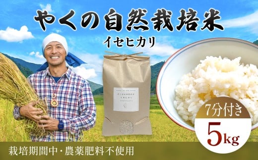 令和7年産 やくの自然栽培米 イセヒカリ 5kg 精米 (7分づき) / 自然栽培米 自然栽培 こめ コメ 米 白米 精米 イセヒカリ いせひかり お米 ごはん やくの 夜久野 京都府 福知山市 FCEV003