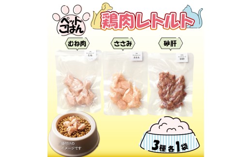 - ペットフード 鶏肉 3種セット 3袋 各1袋 ( 50g×3 ) むね肉 ささみ 砂肝 国産 無添加 ヘルシー ペット ごはん ドックフード キャットフード ペット用品 鳥肉 とりにく 鶏 鳥 とり チキン レトルト 犬 猫 小分け 常温保存 真空パック 防災 グッズ 備蓄 保存食 常温保存 送料無料 徳島県 吉野川市 有限会社阿波食品