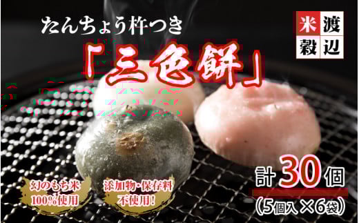 たんちょう杵つき「三色餅」5個 × 6パック 計30個 特別栽培もち米使用! ~幻のもち米100%使用~ 【つきたて モチモチ 添加物・保存料不使用 お雑煮 ぜんざい おやつにも 餅 もち おもち お餅 丸もち 福井 坂井市】 [A-2995]