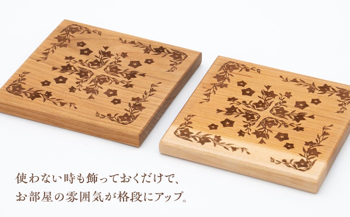 - デザインカッティングボード&コースター6個 桔梗柄 ヤマザクラ 瑞浪市 / YADOSHIBI まな板 木製 天然木 カッティングボード コースター おしゃれ [AZDI008]