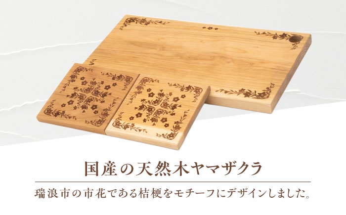 デザインカッティングボード&コースター6個 桔梗柄 ヤマザクラ 瑞浪市 / YADOSHIBI まな板 木製 天然木 カッティングボード コースター おしゃれ [AZDI008]