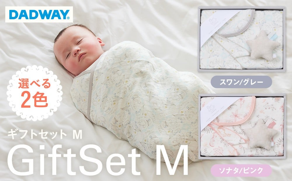 【DADWAY】ギフトセット/M/スワン/ソナタ | 出産祝い ギフト 必需品 ガーゼ おくるみ ガーゼハンカチ ラトル キッズ ベビー用品
