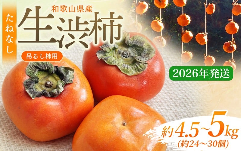 吊るし柿用たね無渋柿 T軸又はクリップ付紐付 約4.5~5kg 約24~30個【2026年10月中旬~11月上旬ごろ順次発送】【ART13】