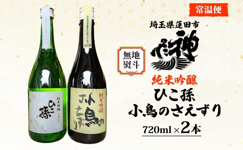 無地熨斗 神亀酒造 ひこ孫 小鳥のさえずり セット 各720ml × 2本 計1440ml 埼玉県 蓮田市 お酒 晩酌 家飲み 日本酒 お燗 食事と一緒に楽しめる 純米吟醸酒 日本酒 飲み比べ 熱燗 ぬる燗 常温 冷や 辛口 お祝い ギフト 地酒 山田錦 贈り物