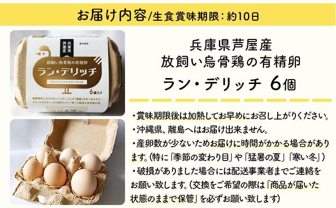 - 兵庫県芦屋産 放飼い烏骨鶏の有精卵『ラン・デリッチ』 | 6個入 卵 たまご 烏骨鶏 新鮮 産直 卵詰め合わせ 卵セット 高級卵 玉子 放飼い