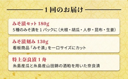 【全3回定期便】荒木さん家の こだわり 漬物 6種 詰め合わせ セット ( みそ漬 / 漬刻み / 奈良漬 / 雷山漬 / 漬殿様 / 黄たかな漬)《糸島》【荒木のつけもの】 [ACE002] 漬け物 つけもの 高菜漬 みそ漬 奈良漬 ギフト 贈り物