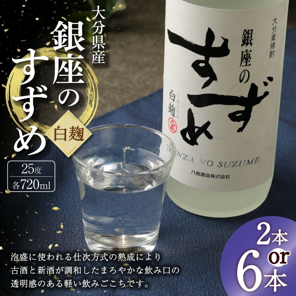 【ふるさと納税】【選べる容量】25度 銀座のすずめ (白麹) 2本/6本 合計1.44L/4.32L セット 1本あたり720ml 焼酎 麦焼酎 麦 麦麹 お酒 アルコール 瓶 国産 九州産 大分県産 送料無料