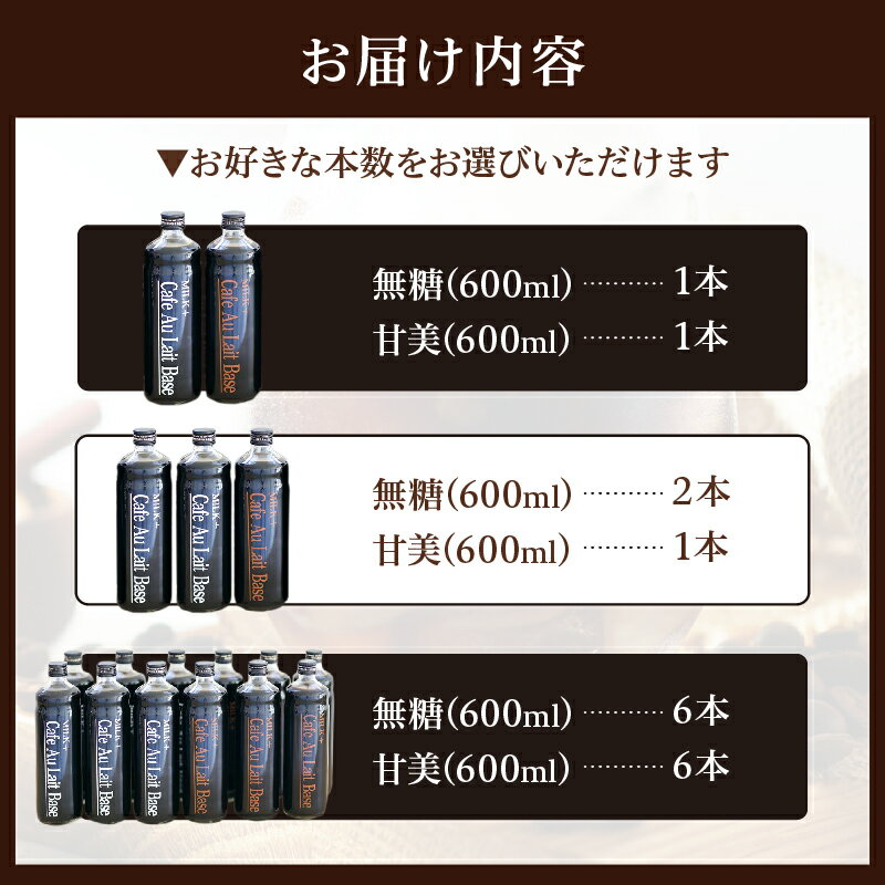 - 【ふるさと納税】≪選べる返礼品≫ カフェオレベース 2本 3本 12本 カフェオレ 2種類 アイス ホット 添加物不使用 無糖 甘美 スイーツ パン コーヒー アレンジ 飲料 飲み物 ドリンク あっさり コク深い 簡単 飲みやすい お取り寄せ 国産 別府市 大分県 送料無料