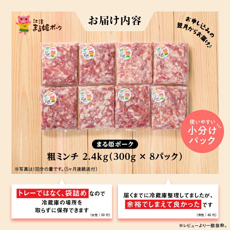 - 【ふるさと納税】【12/31迄限定寄附額】【5カ月定期便】まる姫ポーク 粗ミンチ 2.4kg(300g×8パック)×5回(計12kg)【AK-35】| 豚肉 小分け 国産 送料無料 まる姫ポーク 豚肉 肉 粗ミンチ 挽肉 挽き肉 ミンチ 料理 便利 多用途 小分けパック 定期便 5回 江津市|