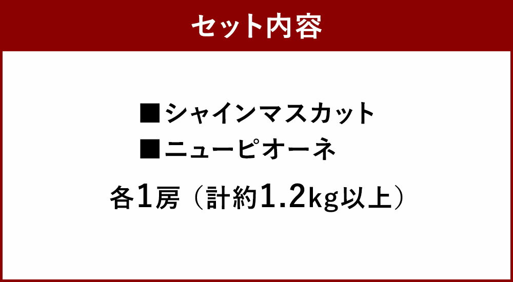 【ふるさと納税】種無し ぶどう 詰め合わせ 2房(合計1.2kg以上) 各1房 シャインマスカット・ニューピオーネ セット ブドウ 葡萄 くだもの 果物 果実 フルーツ 大粒 種なし 冷蔵 岡山県産 国産 岡山県 奈義町 送料無料 【2026年9月上旬~10月上旬 発送予定】