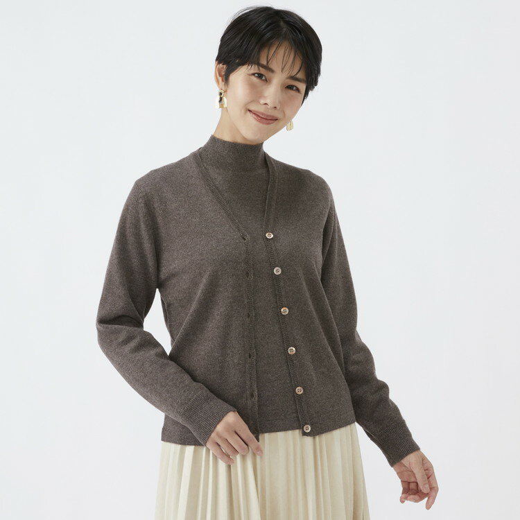 - 【ふるさと納税】【選べるサイズ】日本製 カシミヤ100% レディース Vカーディガン モカブラウン 90805
