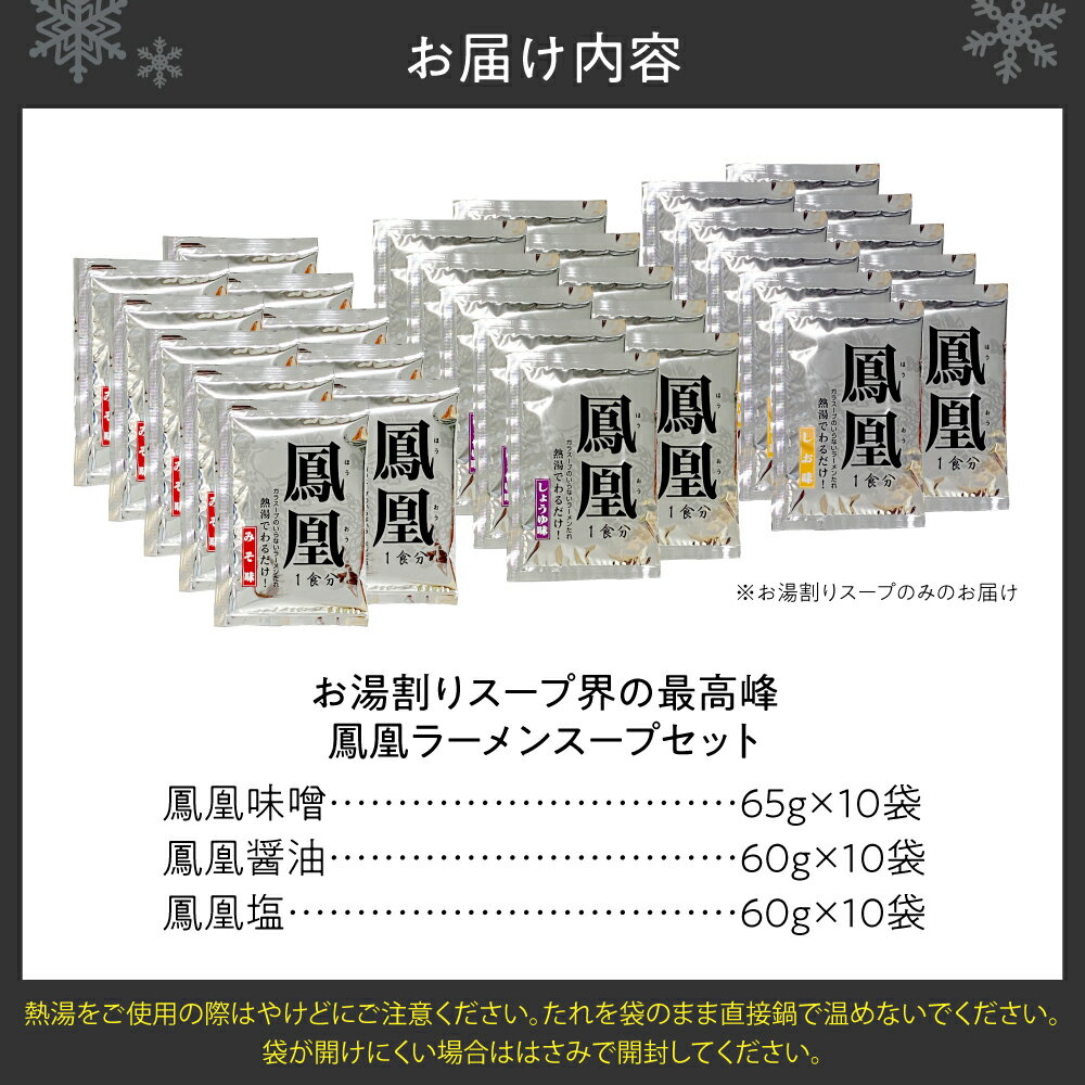 【ふるさと納税】 鳳凰 ラーメンスープ 3種 セット 計30袋 味噌 塩 醤油 味比べ 老舗 スープメーカー 秘伝レシピ 調味料 お湯割り 本格 スープ お取り寄せ グルメ 北海道 札幌市