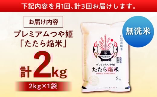 お米【全3回定期便】【無洗米】プレミアムつや姫「たたら焔米」 2kg|つやひめ 米 こめ おこめ 無洗米 ライス 精米 コメ 2キロ ごはん ご飯 おにぎり お弁当 朝ごはん 朝食 食卓 主食 グルメ おいしい 食味ランキング 特A 特別栽培米 ブランド米 国産 新生活 一人暮らし 家族 家庭用 ご当地 ごはんソムリエ おすすめ 人気定期便 島根県雲南市/有限会社藤本米穀店 [AIDB143]