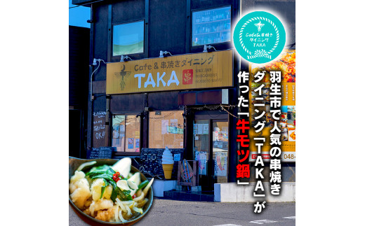 - 牛もつ 鍋 セット 3~4人前 もつなべ 鶏ガラ しょうゆスープ モツ 牛 冷凍 自宅用 焼き鳥屋 TAKA 埼玉県 羽生市