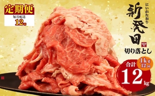 - 【定期便】 切り落とし 1kg×12回 計12kg 新発田牛 黒毛和牛 霜降り 和牛 ブランド牛 国産 しゃぶしゃぶ 小間切れ 小分け 贈答 お歳暮 新潟 新発田 新潟県 新発田市 近江牛 神戸牛 松阪牛 米沢牛 三大和牛 に負けない えのもとミート enomoto031