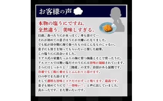 - 訳あり 塩うに 70g 無着色 ミョウバン不使用 無添加 冷凍 うに ウニ 雲丹 寿司 汐うに 潮うに 海鮮 魚貝類 魚介類 キタムラサキウニ 国産 ウニ丼 ご飯 白米 おつまみ 三陸産 岩手県 大船渡市