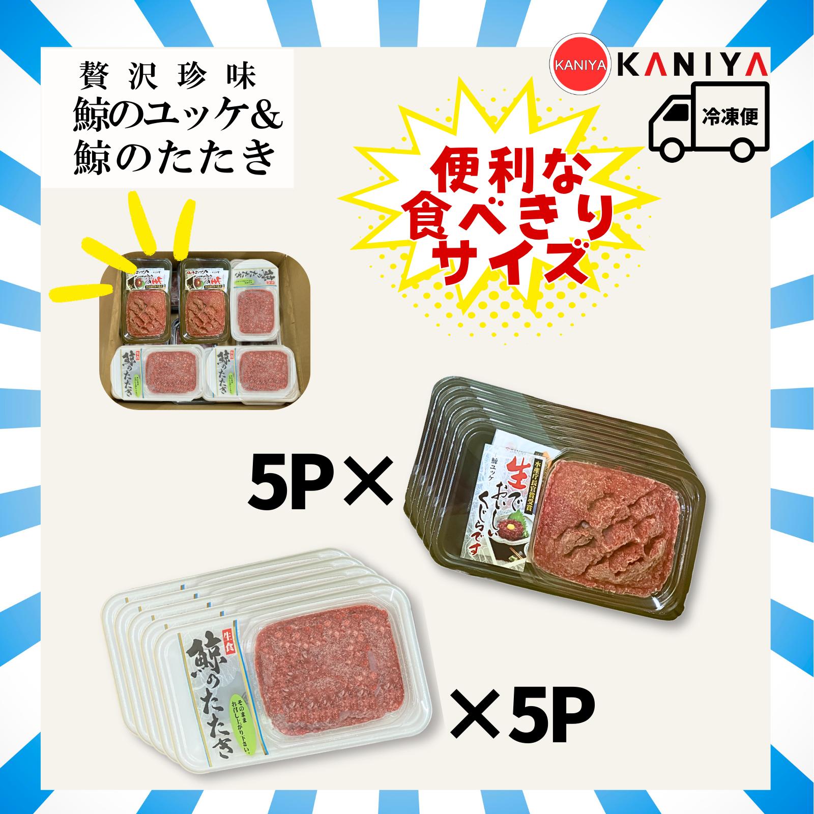 鯨 ユッケ たたき セット 各 60g × 5p 贅沢珍味 くじら 鯨たたき 鯨ユッケ ご飯 お供 蟹屋 KNY-DS003 下関 山口