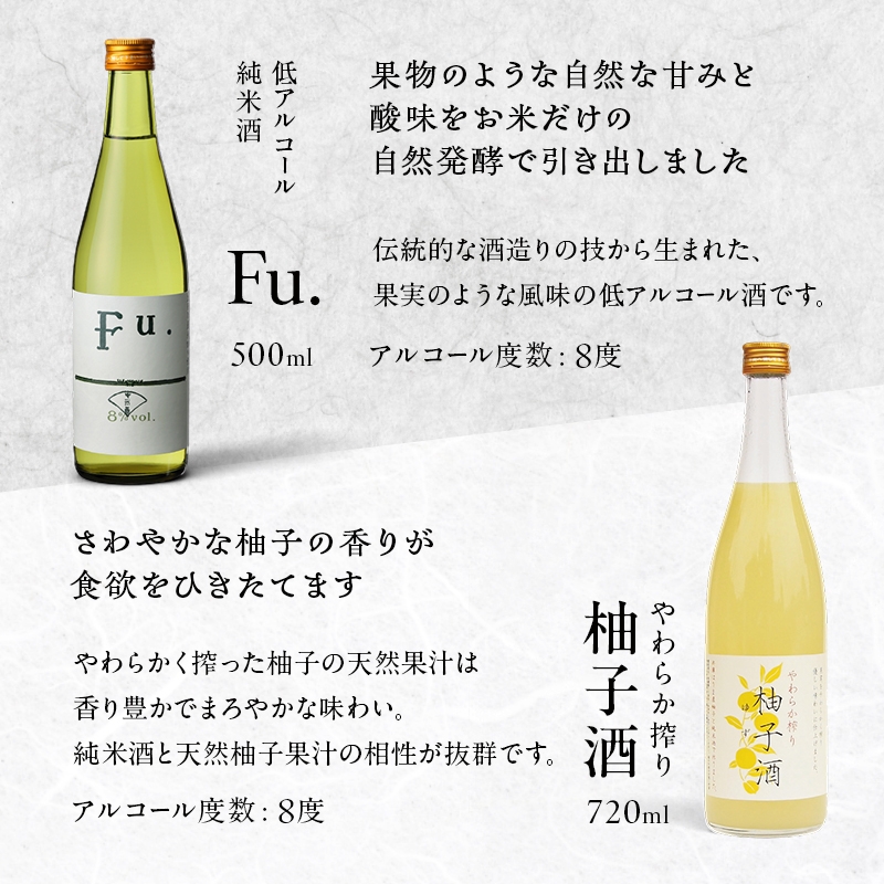 純米酒 低 アルコール 酒 飲み比べ セット Fu. + 柚子酒 詰め合わせ 富久錦 日本酒 純米 果実酒 リキュール 洋酒 清酒 山田錦 お酒 アルコール 柚子 ゆず酒 兵庫 兵庫県
