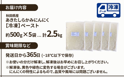 - あきたしらかみにんにく 冷凍ペースト2.5kg 150P3202 / にんにく ニンニク 東北 秋田 大館 国産 薬味 スタミナ 野菜 お得 大容量 2.5kg 2.5キロ ペースト 冷凍 すりおろしにんにく おろしにんにく ガーリック ガーリックペースト 小分け 便利