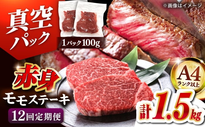 - 【全12回定期便】 博多和牛 赤身 モモ ステーキ 約1.5kg(100g×15)▼肉 牛肉 モモステーキ 牛モモ 赤身 和牛 ステーキ おすすめ 人気 おいしい A4ランク以上 ランキング 国産 定期便 九州 福岡 桂川町/株式会社 MEAT PLUS [ADAQ122]