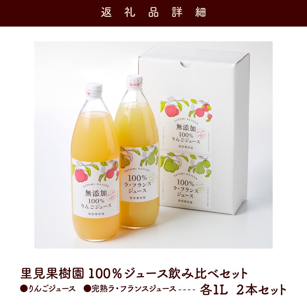 【2026年2月~発送】<飲み比べセット>里見果樹園で採れたりんごジュースと完熟ラ・フランスジュース 0079-2538