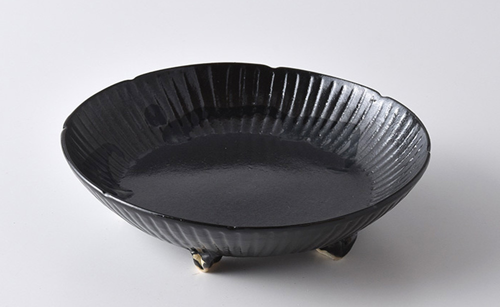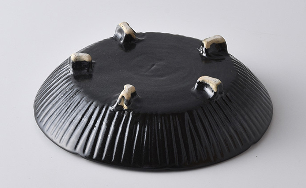 - 有田焼 乃利陶窯 五臓六腑が喜ぶ【こくようせき】黒曜石鎬彫18cm足付パスタ皿 皿 食器 うつわ 器 ギフト 贈り物 30000円 3万円 A30-716