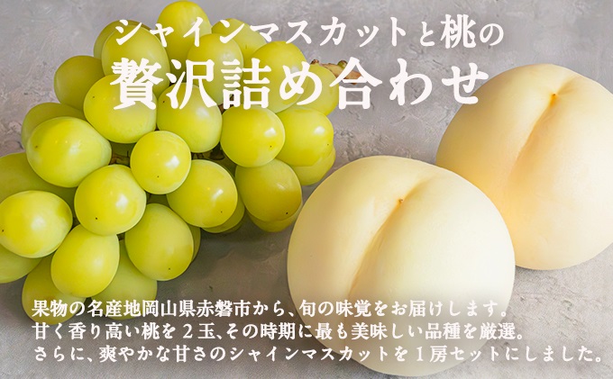 桃 ぶどう 2026年 先行予約 岡山県産 シャインマスカット 大房 1房 白桃 2玉 詰合せ 合計約1.3kg 赤磐市産 フルーツ 果物 ギフト デザート