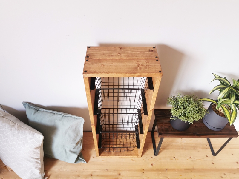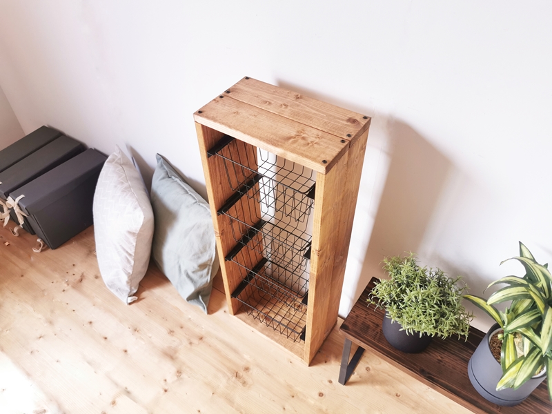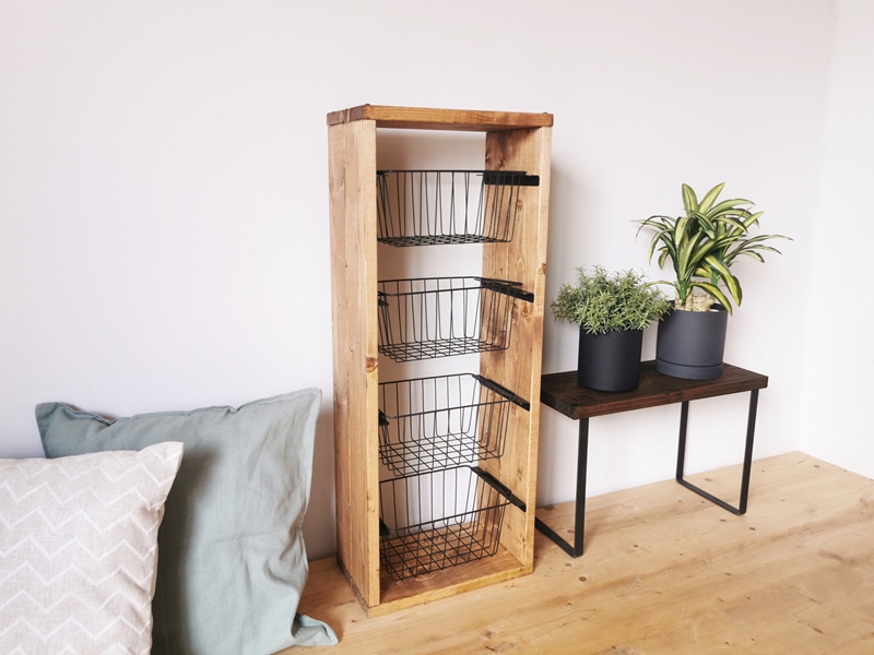 - 無垢材 ワイヤーバスケット シェルフ 4段 かご付 ブラウン|新星金属製作所 大阪府 守口市 玄関 リビング 子供部屋 ホルダー 棚 アンティーク ラック ニッチ カントリー雑貨 収納 アイアン 持ち運び シェルフ ウッド 家具 鉄 木 収納棚 ビンテージ [0877]