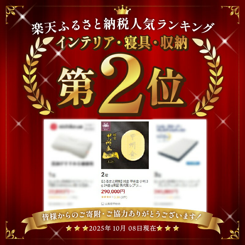 - 【ふるさと納税】 純金 甲州金 小判 3g 24金 g保証 現代風 レプリカ 鏡面仕上 コレクション 置物 ギフト プレゼント ケース付 保証書付 2025年12月1日より寄附額改定予定 k293-006