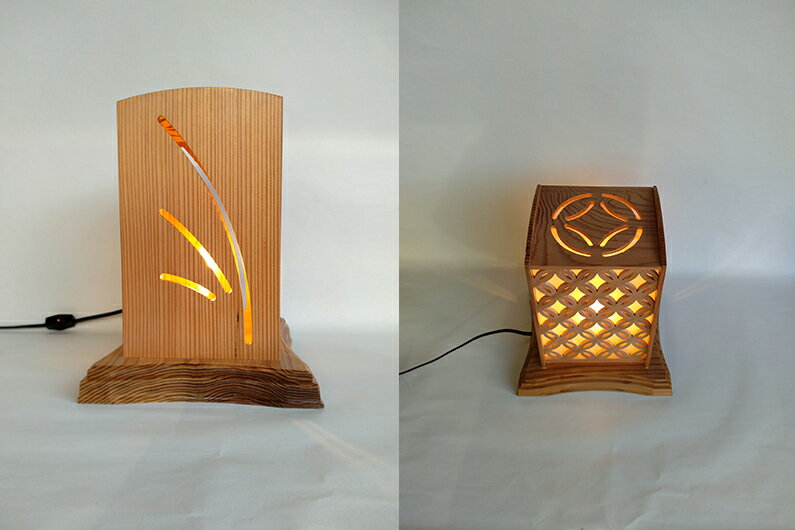 - 【ふるさと納税】【杉無垢】組子小灯りスタンド 《幅約230×奥行約210×高約270(mm)》 杉無垢材を使用した電気スタンド 家具 インテリア 加茂市 吉建