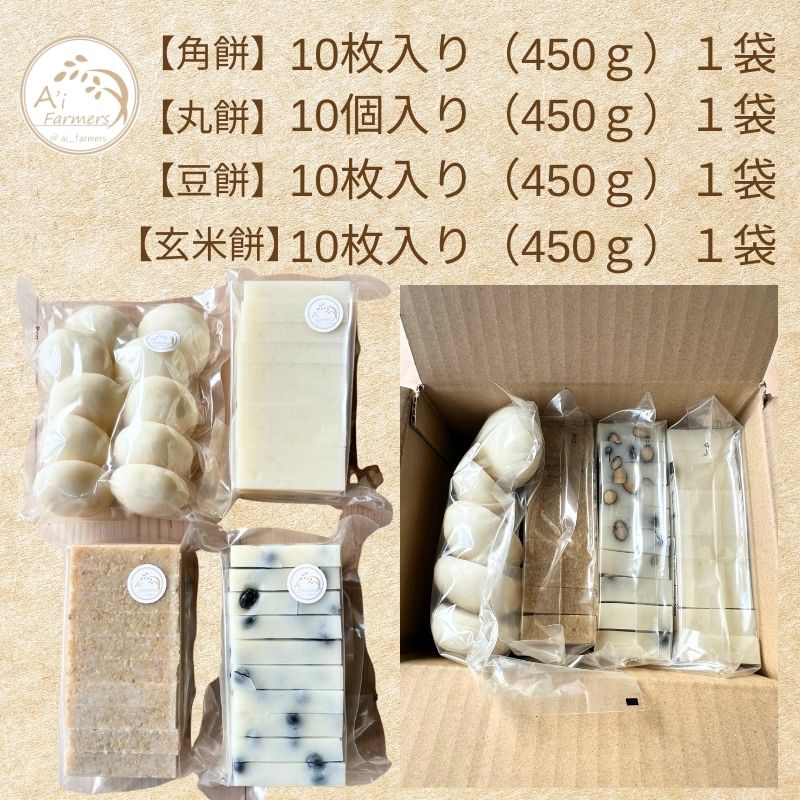 【ふるさと納税】新潟県産 こがねもち「杵つき餅」4種セット1.8kg 【12月25日入金分まで年内発送】白角餅/白丸餅/豆餅/玄米餅 各10個入り(450g)×4袋 糸魚川市 今井産 アイファーマーズ【鍋 お雑煮 焼餅 もち米 きな粉餅 お正月 もち 餅 モチ】