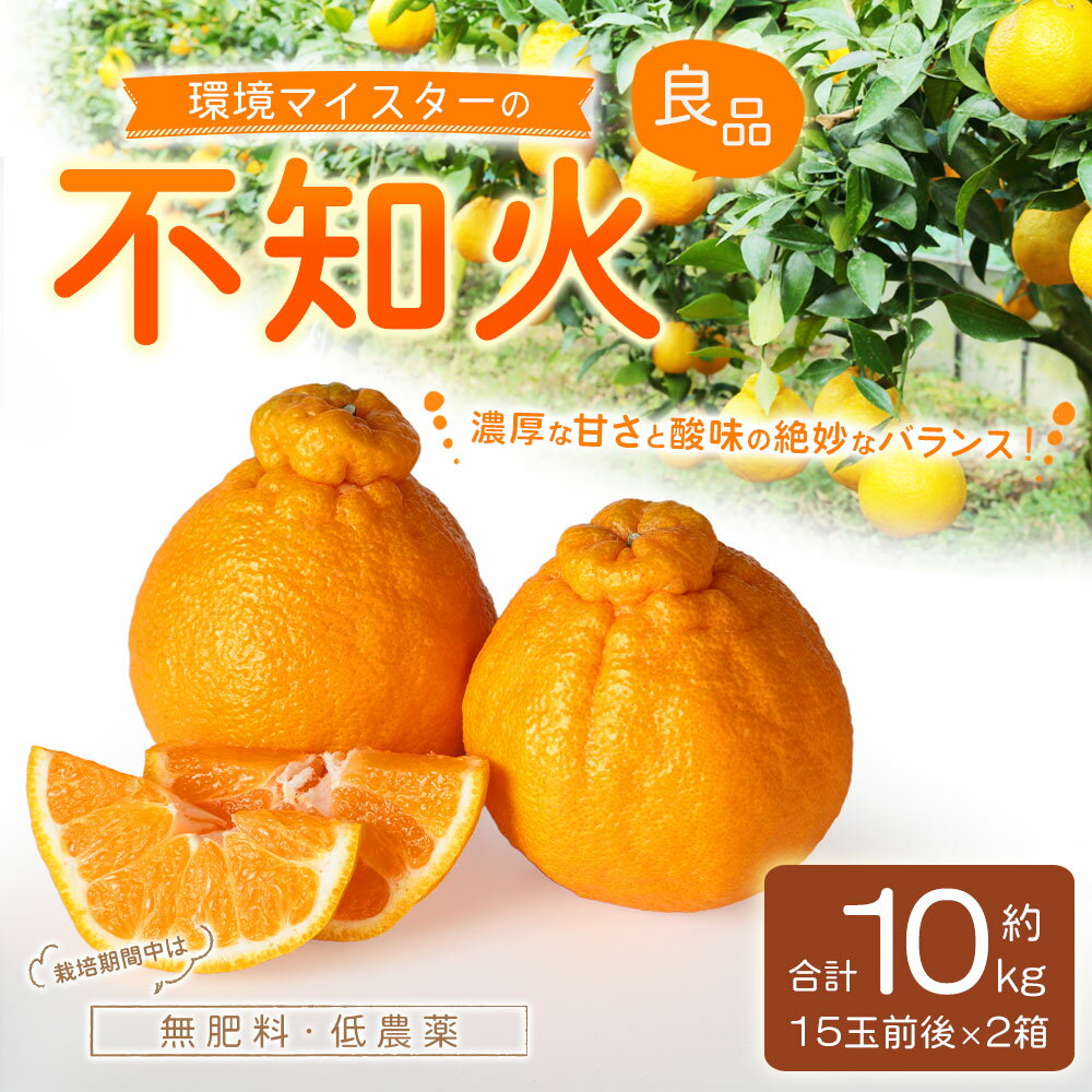 【ふるさと納税】環境マイスターの不知火 良品 合計約10kg 約5kg×2箱 15玉前後目安 (栽培期間中は無肥料・低農薬) 不知火 柑橘 フルーツ 果物 国産 九州産 熊本県産 冷蔵 送料無料【2026年1月上旬-4月下旬迄順次発送予定】
