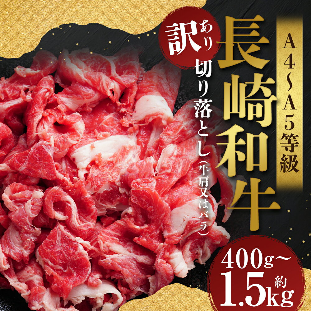 【ふるさと納税】<選べる内容量>【訳あり】【A4~A5】長崎和牛 切り落とし 約400g・約500g・計約1kg・計約1.2kg・計約1.5kg 1パック・2パック・3パック 黒毛和牛 牛肉 お肉 牛肩 バラ 赤身 霜降り 冷凍 長崎県産 国産 九州 長崎県 時津町 送料無料