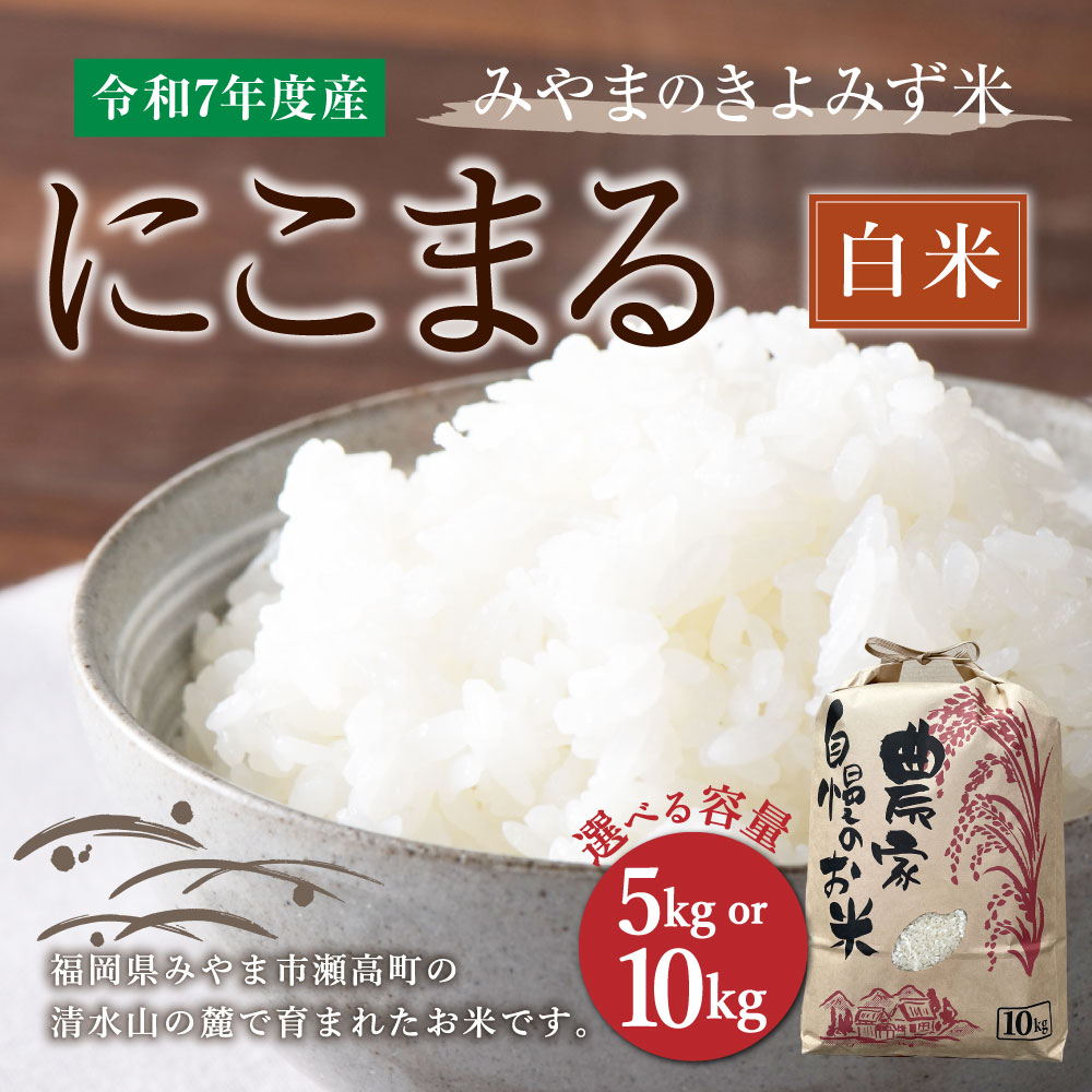 - 【ふるさと納税】<選べる> みやまのきよみず米 にこまる 5kg または 10kg 白米 令和7年産 単一原料米 米 九州産 みやま市産 送料無料 A234 A285【2025年11月上旬より順次発送予定】