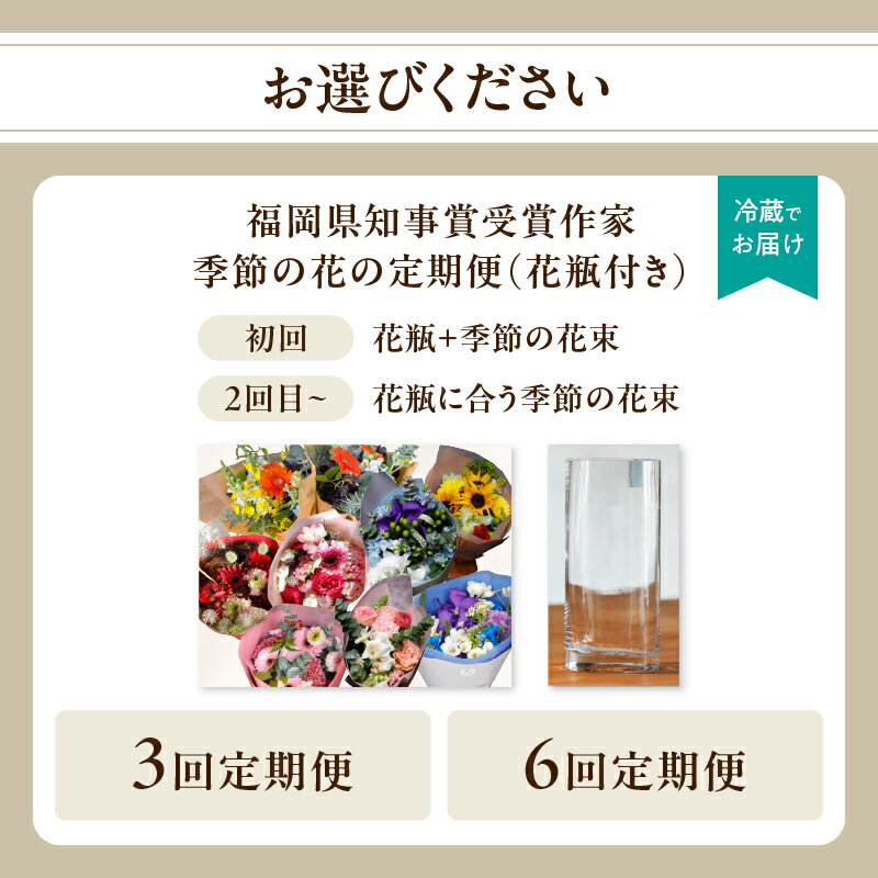 - 【ふるさと納税】【選べる回数】花瓶付き福岡県知事賞受賞作家ー季節の花の定期便(全3回・全6回) 定期便 全3回 全6回 花瓶付 花 花束 フラワーアレンジメント インテリア 福岡県 八女市