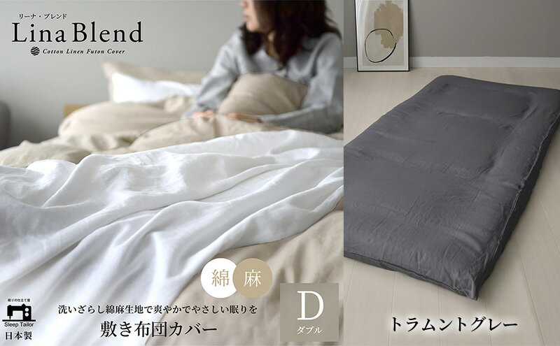 【ふるさと納税】敷き布団カバー ダブル リネン&コットン「リーナブレンド」トラムントグレー 寝具 日本製 麻 綿 洗いざらし 極上の柔らかさ 肌馴染み しなやか 静岡 浜松市