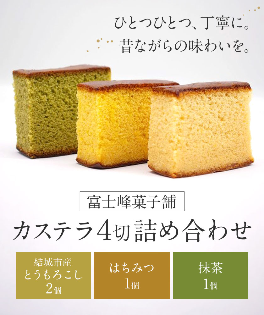 - 【ふるさと納税】カステラ 詰め合わせ 4切 富士峰菓子舗《30日以内に出荷予定(土日祝除く)》茨城県 結城市 お菓子 スイーツ 和菓子 とうもろこし はちみつ 抹茶