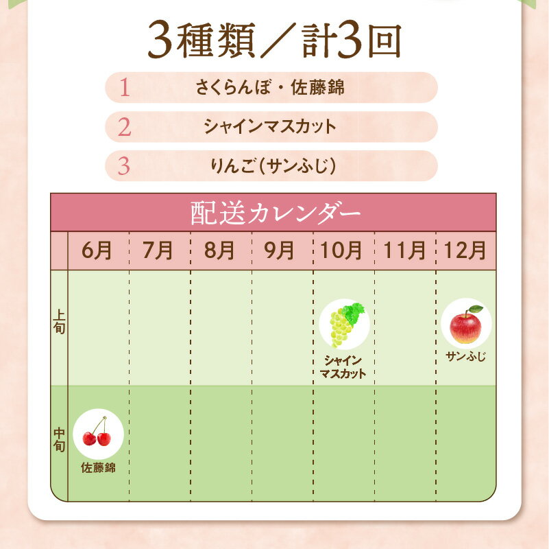 - 【ふるさと納税】【先行予約】 令和8年産 旬のフルーツ 3回 定期便 さくらんぼ 佐藤錦 ぶどう シャインマスカット りんご サンふじ