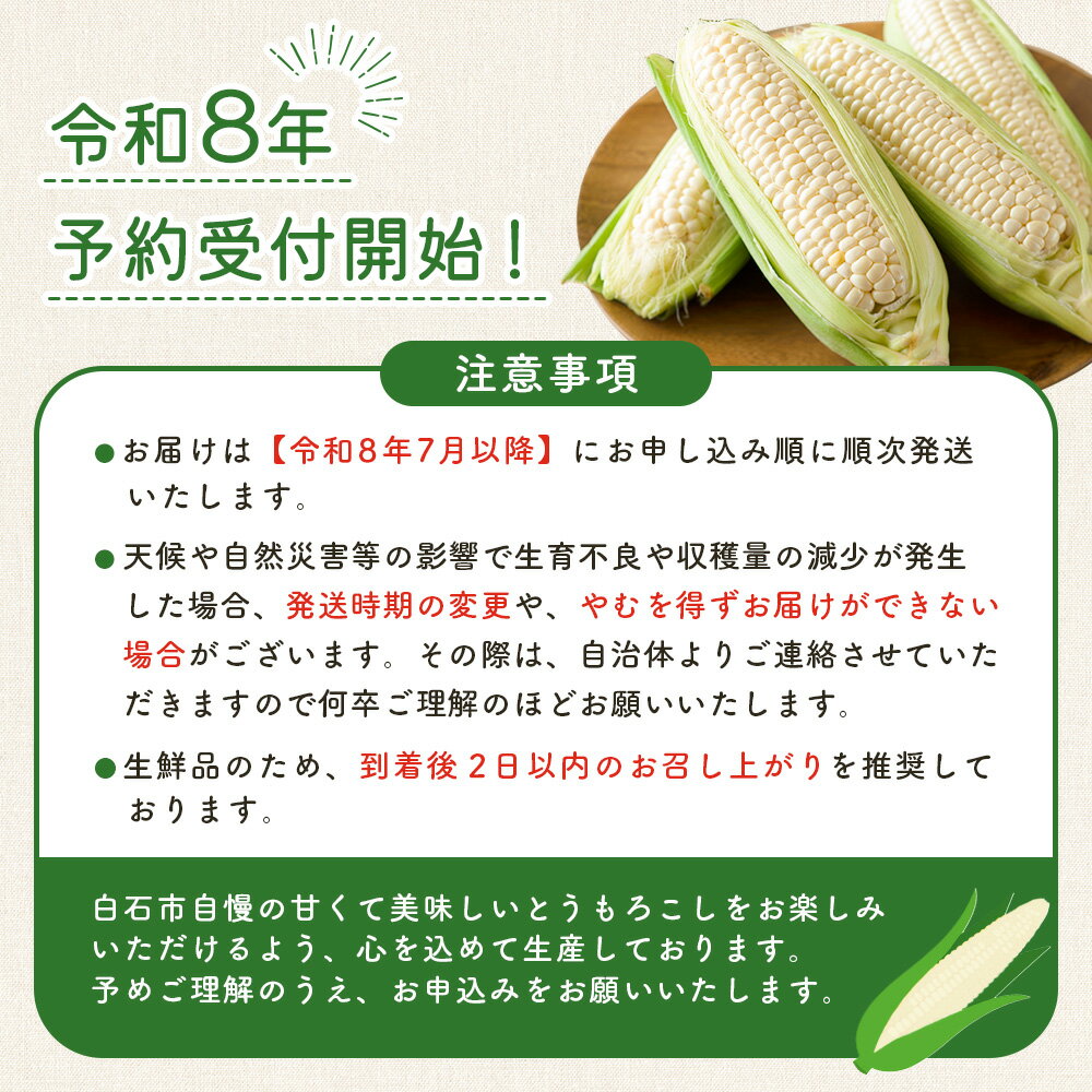 【先行予約】【訳あり】下妻産朝採りとうもろこし(ピュアホワイト)約6kg【2026年6月下旬~7月下旬ころ順次発送予定】【 とうもろこし とうきび トウモロコシ 甘い スイーツ デザート ピュアホワイト コーン 人気 野菜 新鮮 おすすめ 】