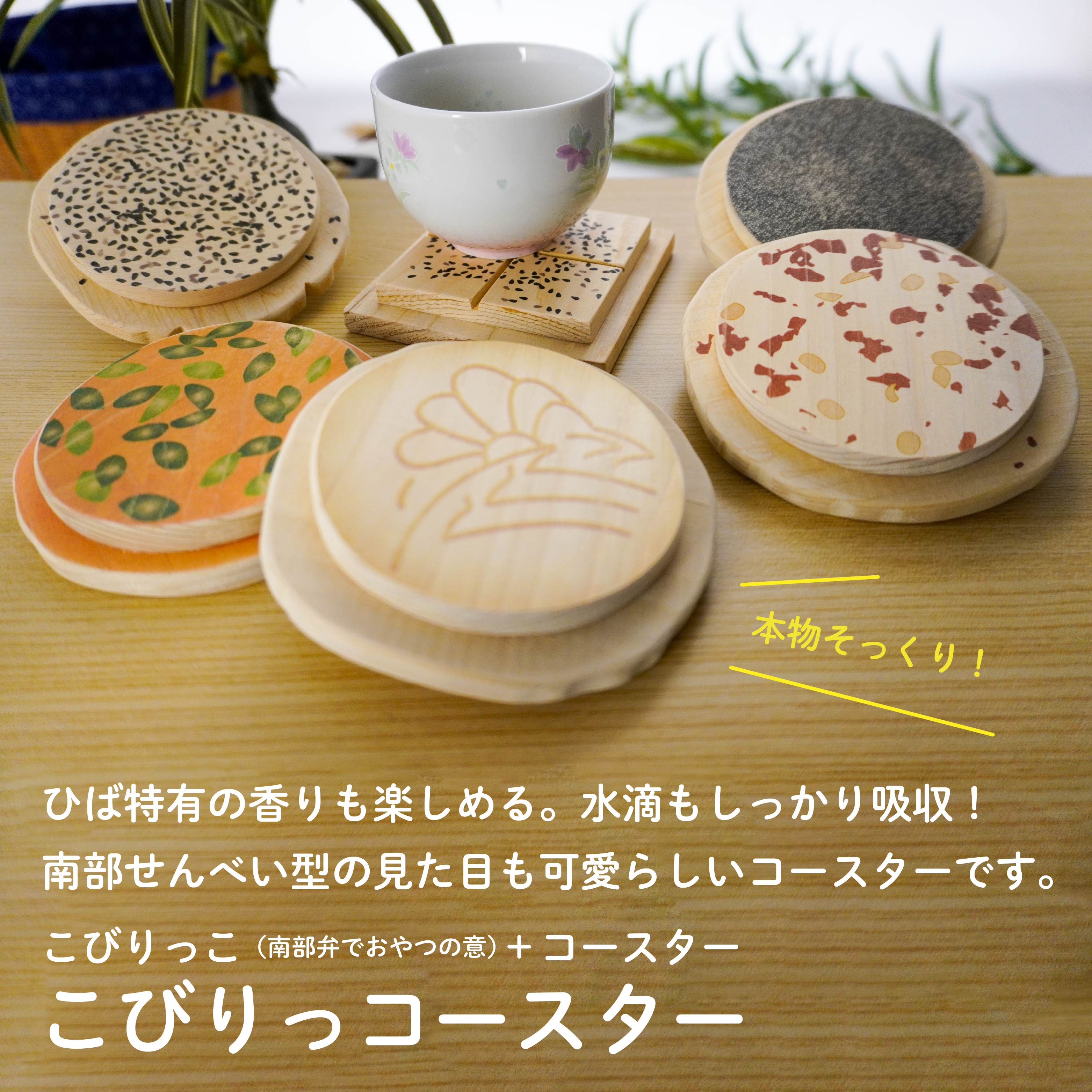 【ふるさと納税】こびりっコースター 全6種類セット 〈ごま、まめ、あめせんべい、ぬりごま、おつゆ、かぼちゃ〉 青森県産ひば材使用 コースター 青森県 八戸市