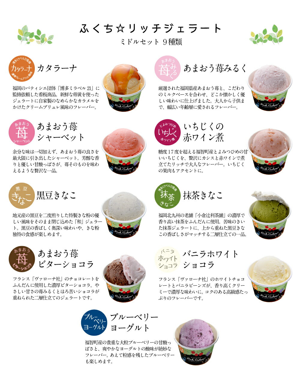 - 【ふるさと納税】 レビューキャンペーン ふくち☆リッチジェラート ミドル(9個セット)| ご当地スイーツ 福岡県 福智町 ご当地スイーツ デザート アイス 贈答 ギフト 詰め合わせ お祝い 誕生日プレゼント 冷凍 送料無料 《福智町チャンス》
