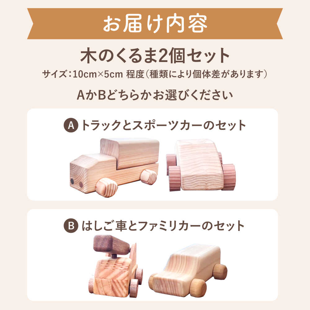 【ふるさと納税】【車のタイプを選べる!】玩具 家具職人が作った 木のくるま 2個セット 木のおもちゃ 木製玩具 知育玩具 玩具 おもちゃ オモチャ 赤ちゃん ベビー 子供 キッズ 男の子 女の子 プレゼント ギフト 贈り物 2個 島根県雲南市/有限会社三ツ和[AIDE004]