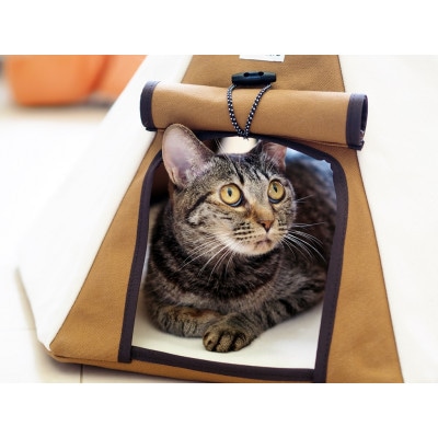 【ネコテント】国産帆布の本格的デザインペットテント(生成×ブラウン)_00374【1155790】
