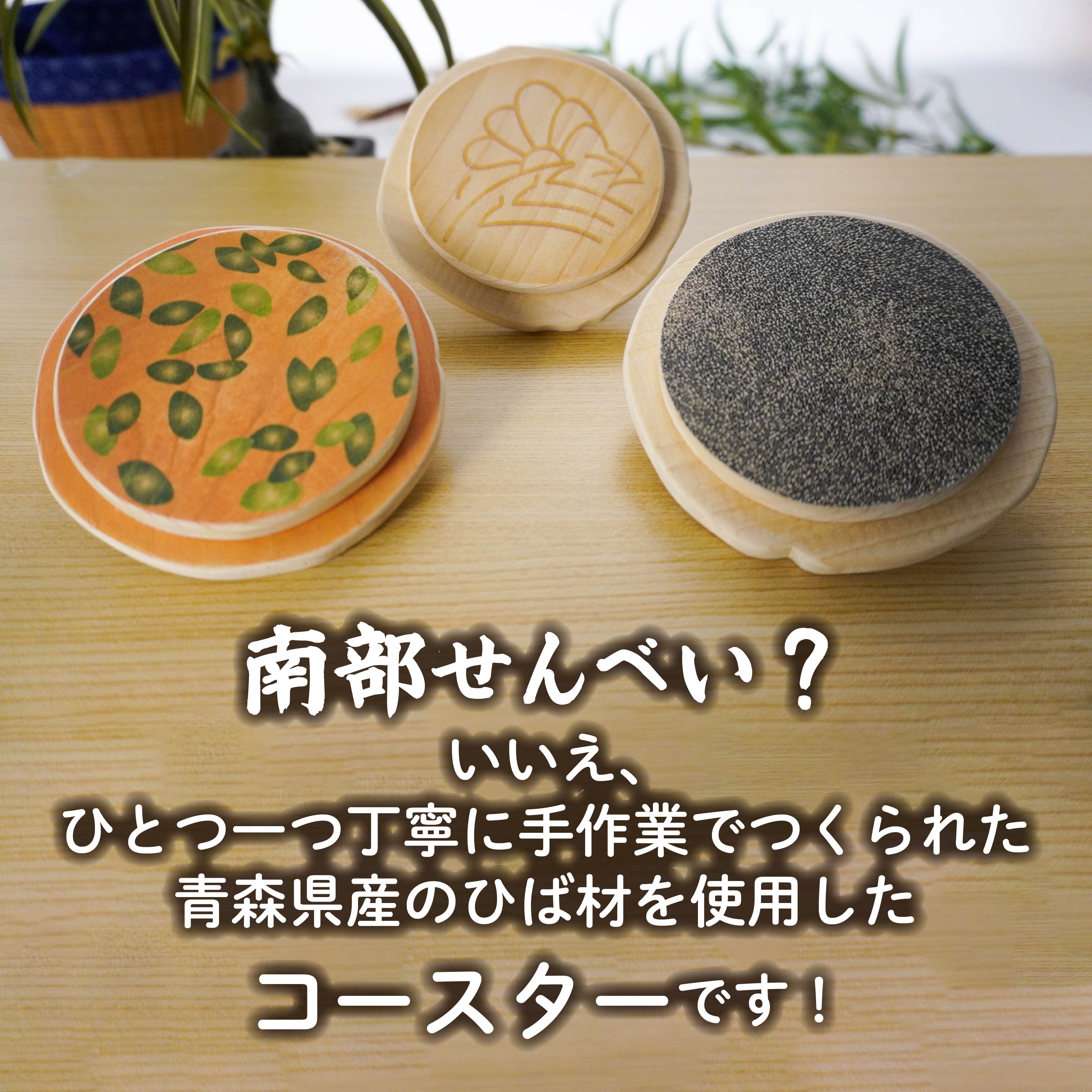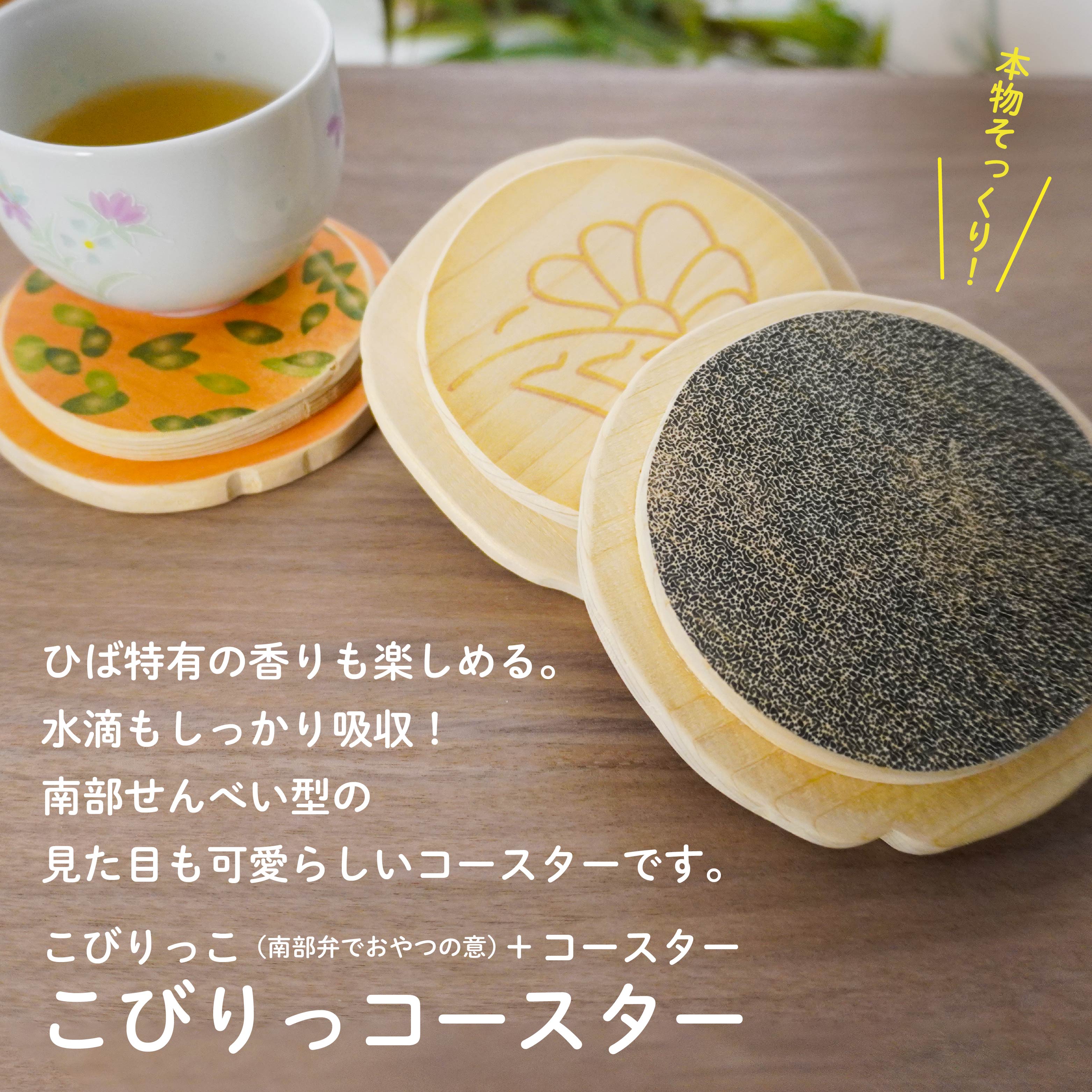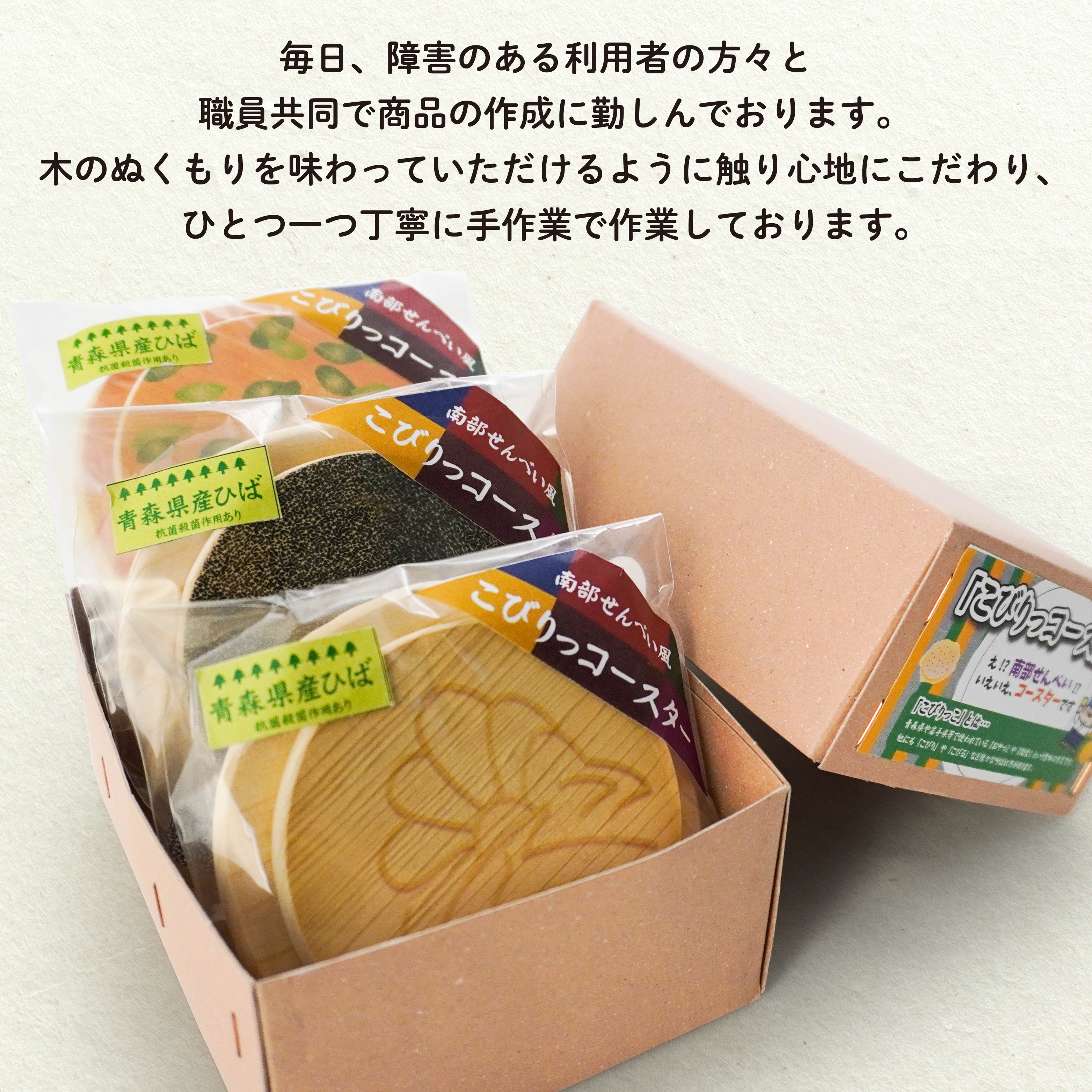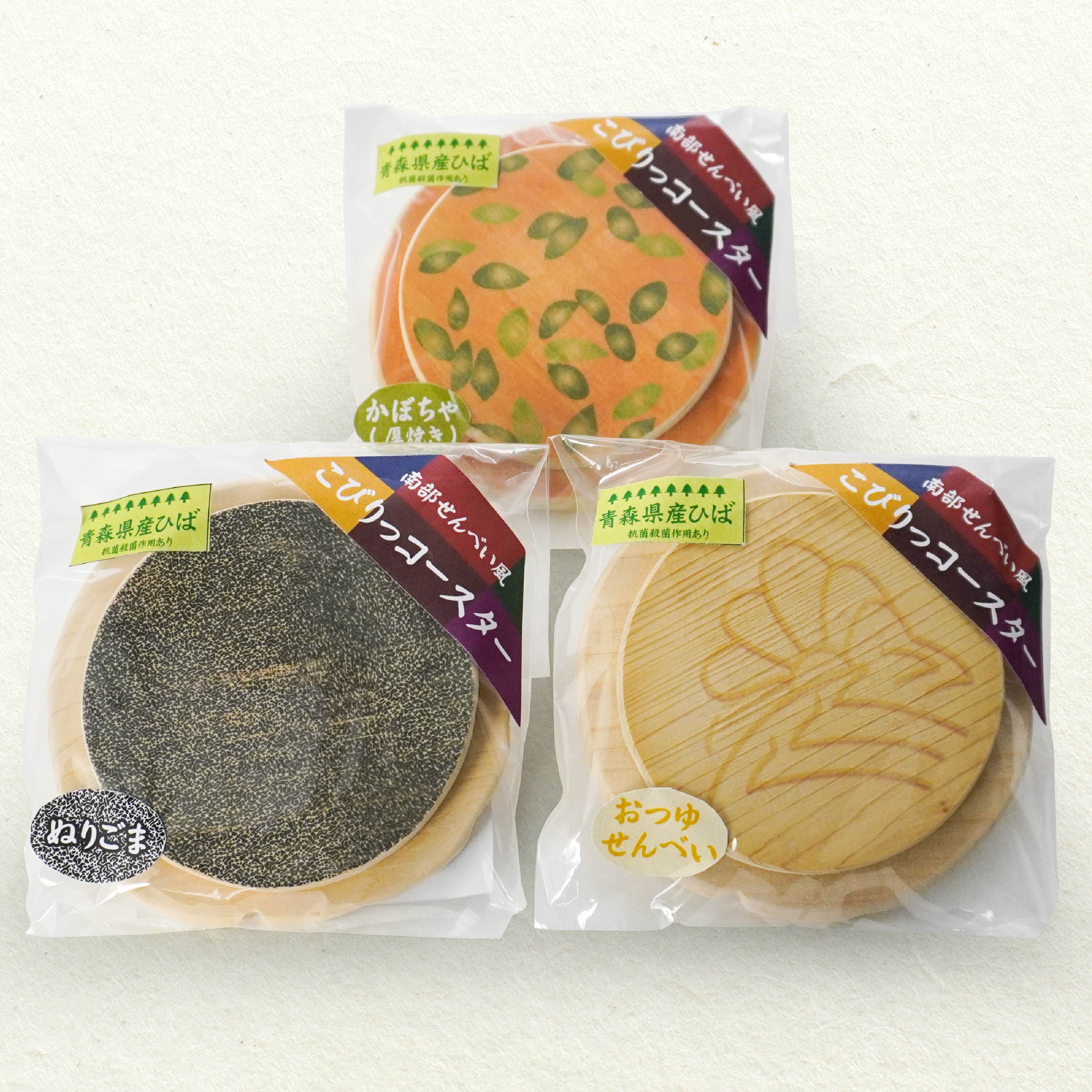 - こびりっコースター 3枚セット(3) 〈ぬりごま、おつゆ、かぼちゃ〉 青森県産ひば材使用 コースター 青森県 八戸市