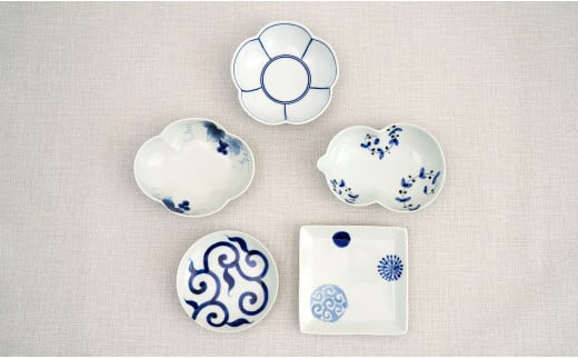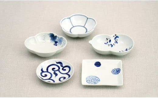 - 有田焼 粋なカタチ 染付小皿小鉢揃い (5枚セット)深海三龍堂 豆皿 豆小皿 菓子皿 和食器 お皿 小鉢 中鉢 おしゃれ 30000円 3万円 A30-670